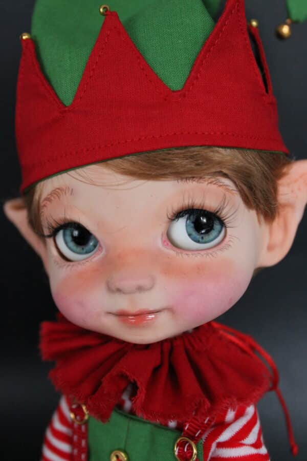 Con su rostro modelado con detalle y un gesto pícaro, Kiko mantiene ese encanto propio de los elfos que nunca se quedan quietos. Sus ojos, grandes y vivaces, parecen estar siempre observándolo todo, buscando nuevas aventuras en el espíritu navideño.